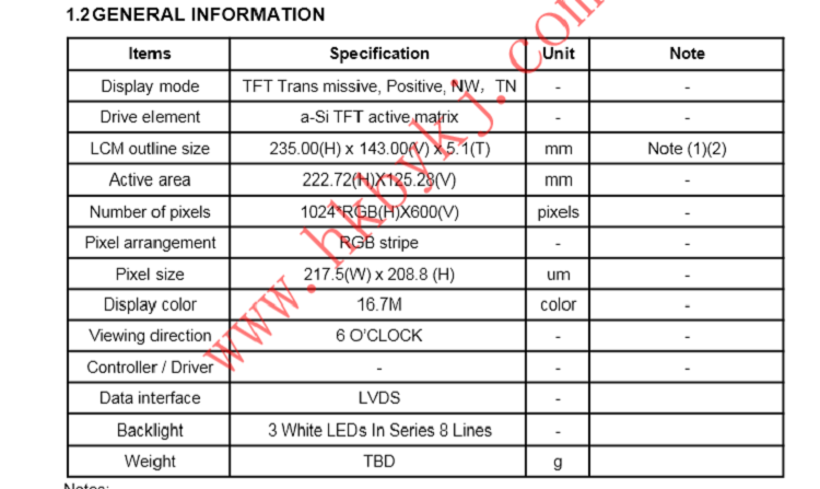 面板尺寸: 10.1寸