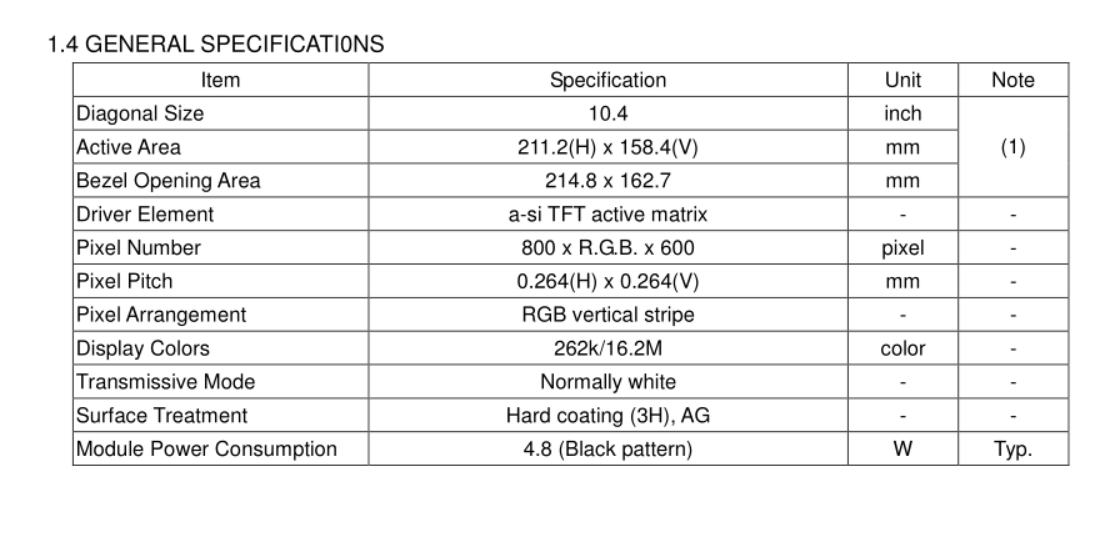 面板尺寸: 10.4寸